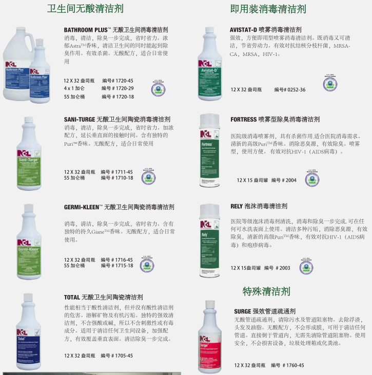 干凈、衛(wèi)生的衛(wèi)生間反映了設(shè)施的整體清潔程度。NCL的衛(wèi)生間清潔系統(tǒng)提供了最先進(jìn)的清潔、消毒和除臭產(chǎn)品,以確保最大功效的控制衛(wèi)生間環(huán)境中致病細(xì)菌。對(duì)于地板,墻壁,和其他表面,你也會(huì)找到一個(gè)更完整的程序。健康 經(jīng)濟(jì) 的清洗方案可以選擇適合清潔人員使用的化學(xué)輸送系統(tǒng)。低成本的傳統(tǒng)包裝提供最大的靈活性。稀釋控制管理系統(tǒng)提供稀釋狀態(tài)下各種各樣的產(chǎn)品,以達(dá)到最佳效果。