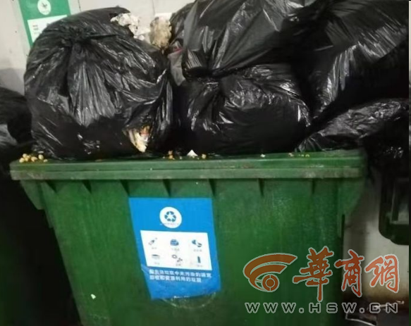 6、未央區緯三十一街雅荷紫金陽光社區廚余垃圾桶內垃圾混亂。